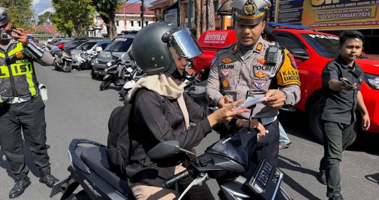 Petugas menyapa satu per satu pengguna jalan, baik pengendara roda dua maupun roda empat, sembari memberikan edukasi tentang pentingnya tertib berlalu lintas.